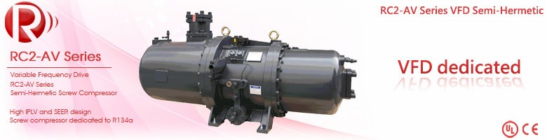HANBELL RC2-AV series semi-hermetic screw compressor is developed especially for applications with variable frequency drive in air-conditioning and refrigeration