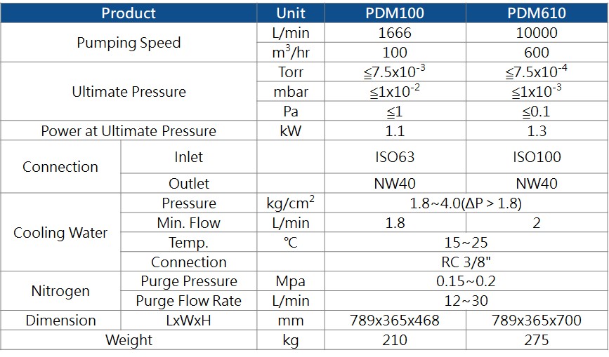 PDM/PMH 系列乾式真空泵浦
